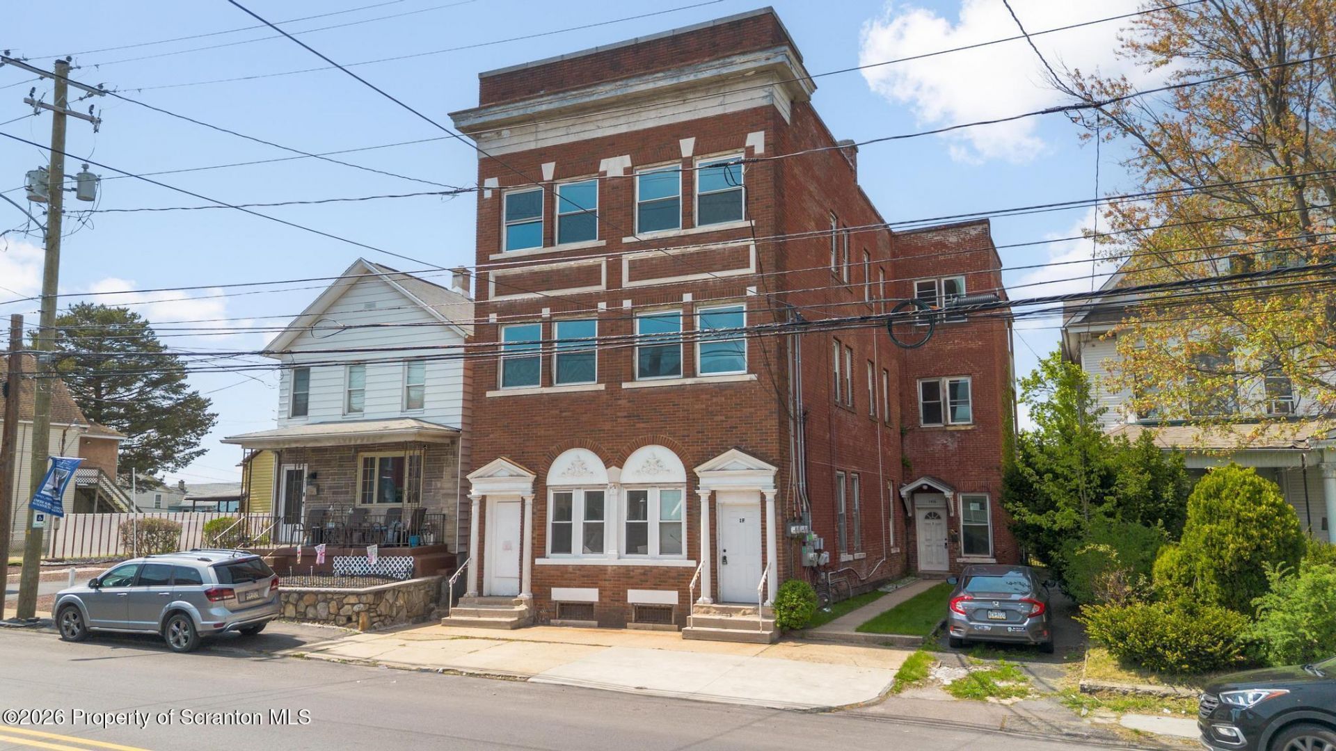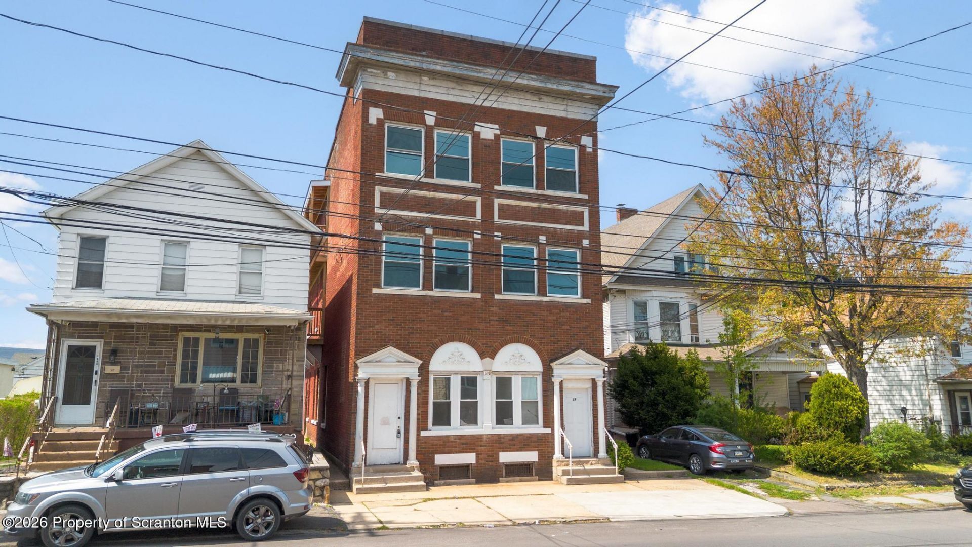 Great investment opportunity in South Scranton. Seven residential units and 3 garage spaces for extra income. Four, 3-BR, one, 2-BR and two, 1-BR apartments.
