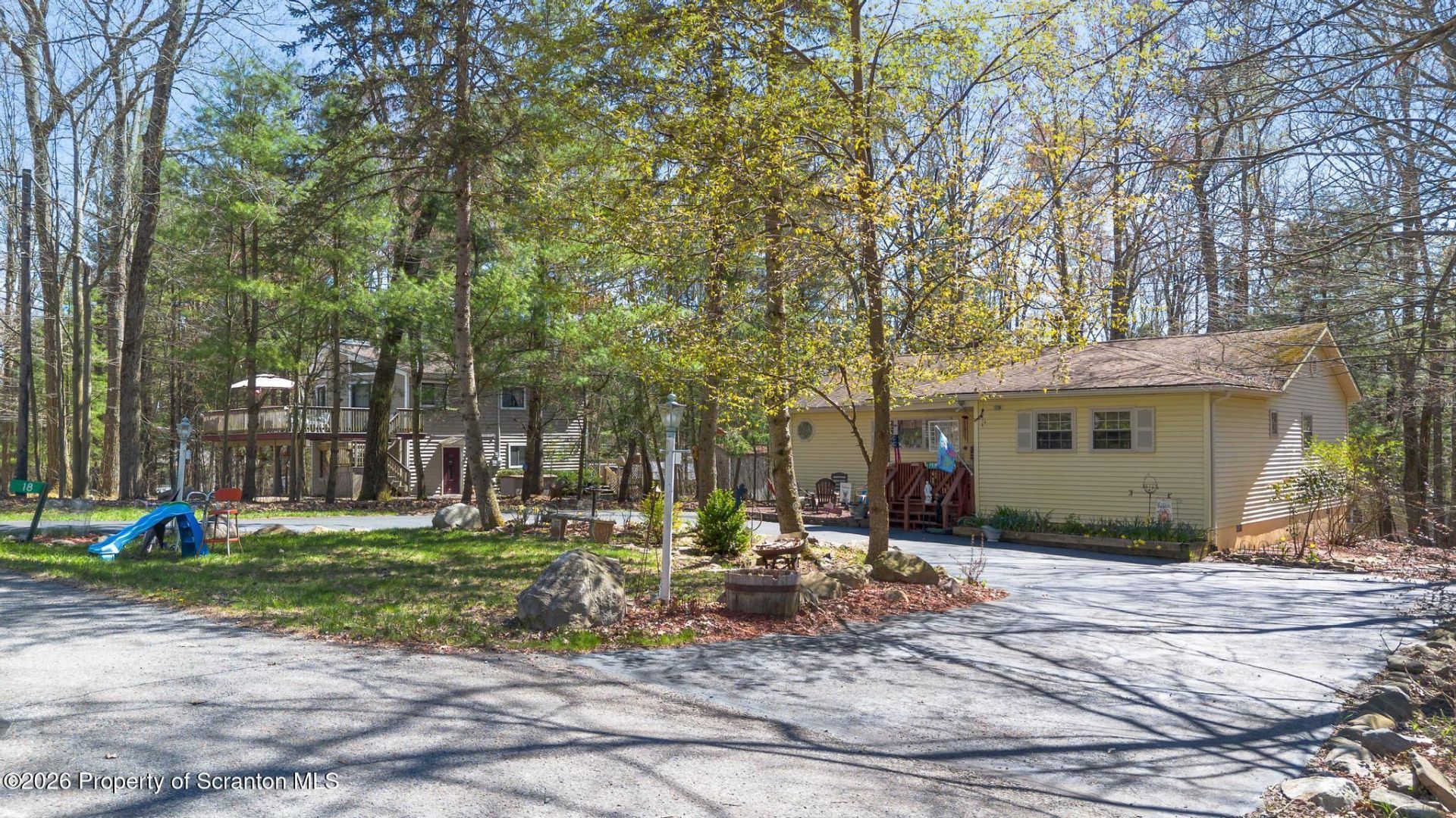 Your new home or Pocono retreat awaits you in Thornhurst, where nature, comfort and recreation come together in one beautiful setting. This 2 bedroom, 1.5 bath ranch with a spacious layout designed for both relaxation and entertaining. Large rear deck is spacious for everyone. Located within the highly sought-after North Pocono School District and nestled in the Thornhurst Country Club Estates