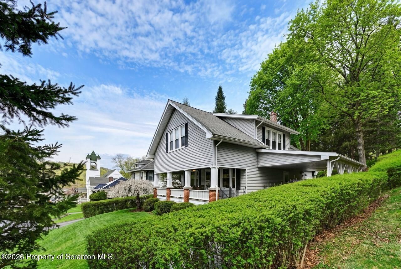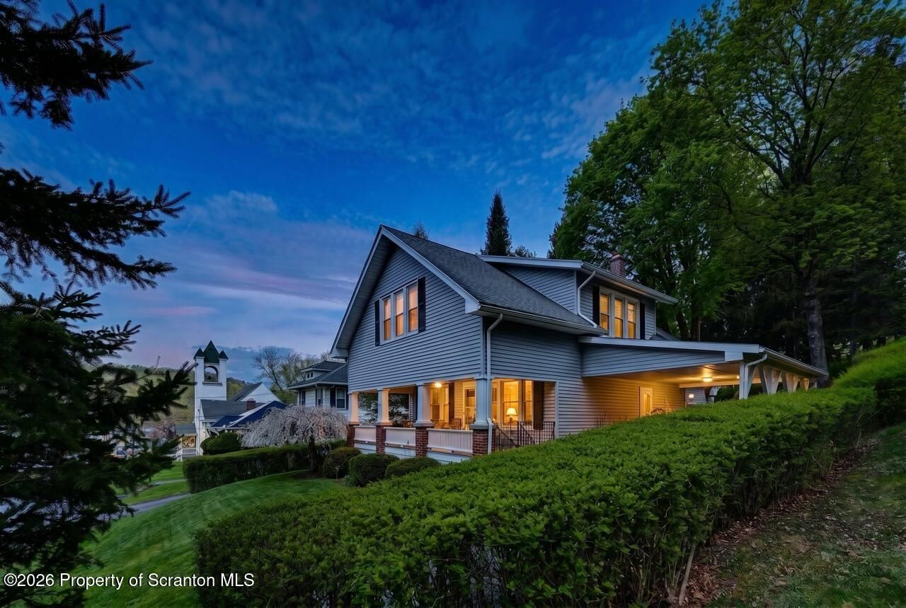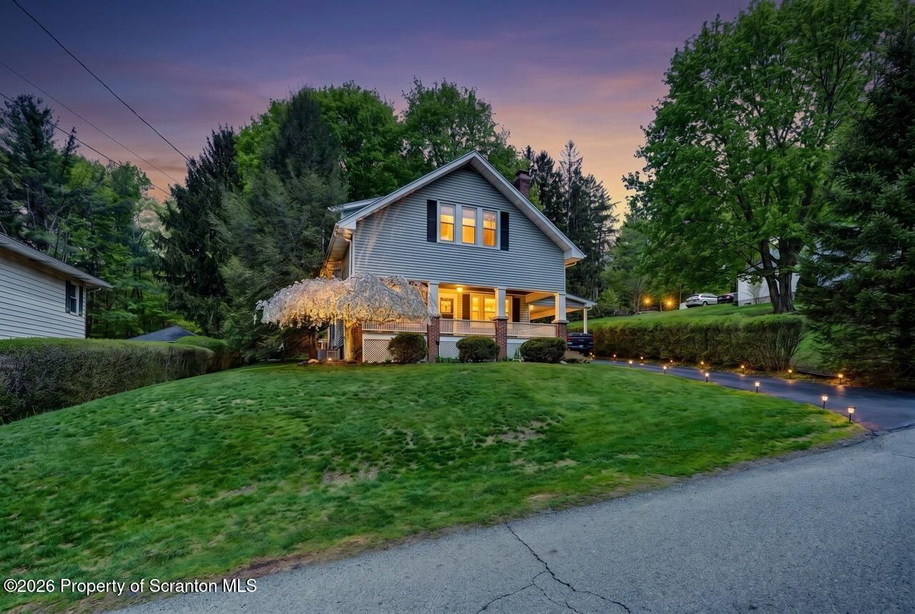 Tucked away on a beautiful, quiet street in the Lackawanna Trail School District--just a three-block walk to downtown--this elegant 4 bedroom, 2 bath home seamlessly blends timeless character with modern comforts, creating an ideal setting for both family living and entertaining. From the moment you arrive, the delightful front porch with gas firepit sets a welcoming tone, while the beautiful yard