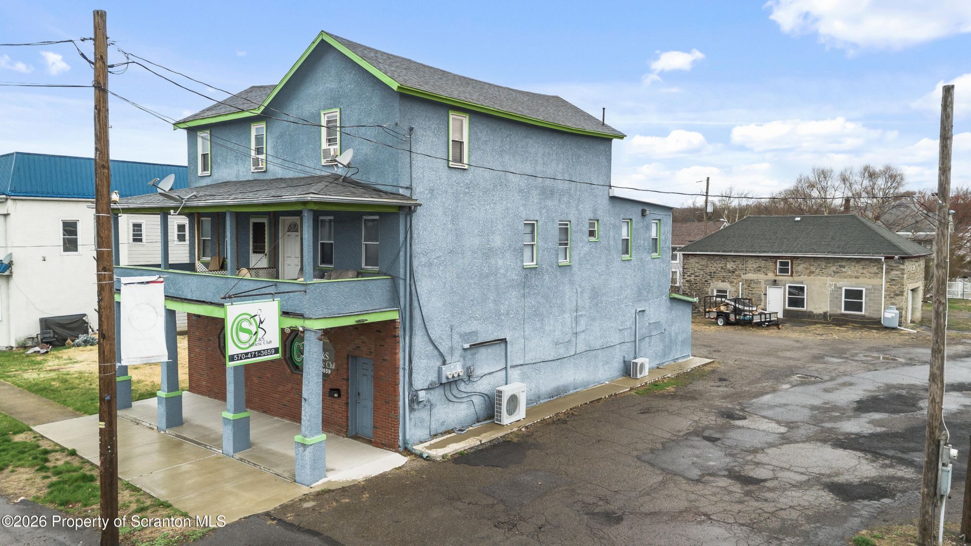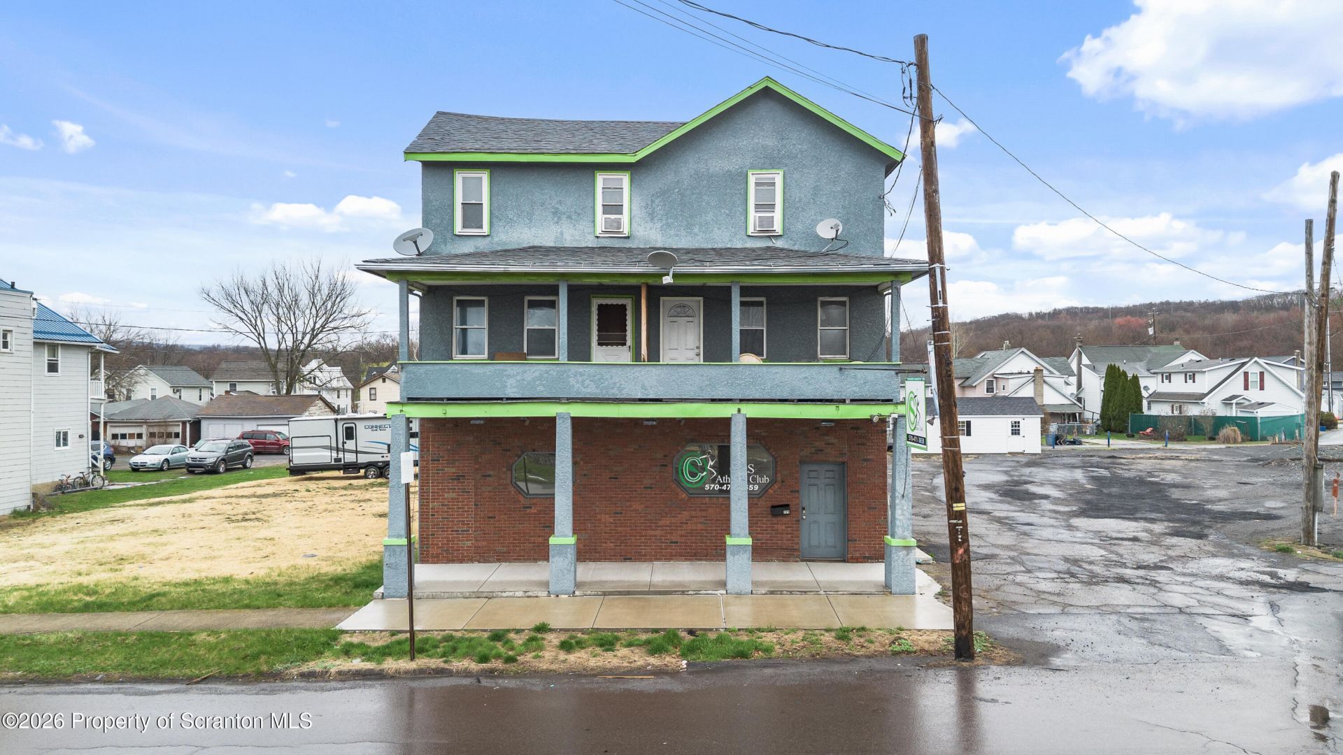 Commercial Investment Opportunity in Prime Moosic Location. Versatile mixed-use property offering strong potential in a high-visibility location just off a busy intersection. The main building offers 3 units, including a former gym on the first floor with a wide open layout, ideal for a variety of commercial uses. The second floor includes two residential units--a 1-bed/1-bath and a 3-bed/1-bath,
