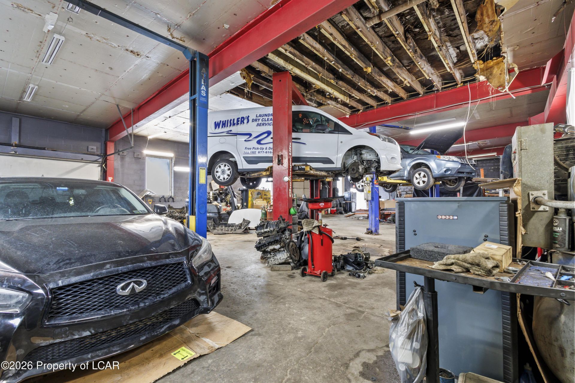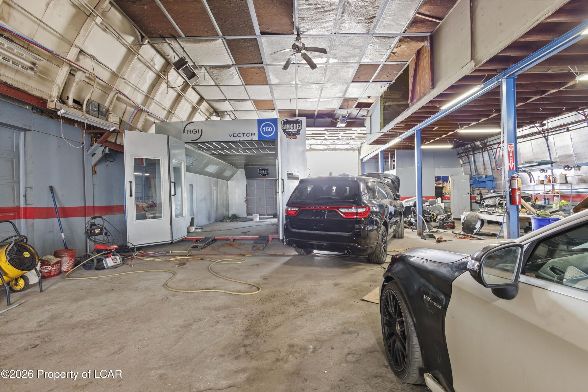 Prime Commercial property situated on approximately 1.43 acres in a high-visibility, centrally located area with convenient access to major roadways and surrounding commercial activity. Previously operated as an auto body and paint shop, truck mechanical repair facility, and car wash. Property includes a private water source providing operational cost advantages. First level features a commercial service/workshop area, office space, restroom, and 2 large service bays suitable for heavy equipment and trucks. Second level offers four (4) private offices suitable for administrative or potential rental use. Ceiling height 16 ft (approx.), accommodating trucks and large vehicles
